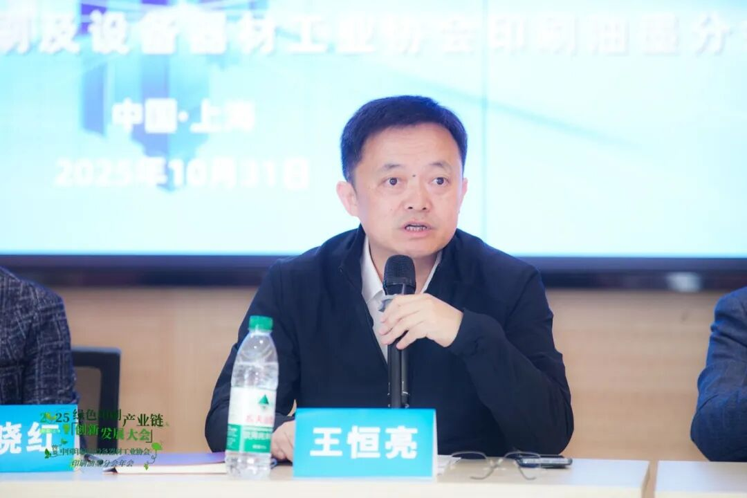 會議伊始,中國印工協印刷油墨分會輪值理事長、上海英威噴墨科技有限公司總經理王恒亮對印刷油墨分會2025年的工作進行了全面細致的匯報。過去一年,印刷油墨行業在促進高質量發展、推動企業綠色化與智能化轉型升級方面取得了顯著成效。印刷油墨分會充分發揮橋梁紐帶作用,積極推進總會決議的落實,完成總會交辦的各項工作任務;在北京國際印刷技術展覽會上協助做好前期參展和現場服務工作,并成功召開了油墨團體標準宣貫推介交流會,為行業可持續健康發展貢獻力量;分會持續進行油墨行業新技術、新產品的宣傳和推廣工作,微信公眾號粉絲數量持續攀升;積極籌備2025綠色印刷產業鏈創新發展大會,感謝全體參與單位的大力支持。