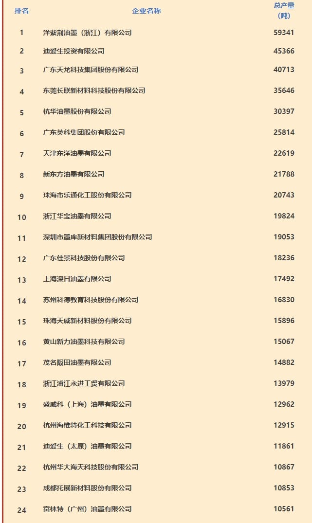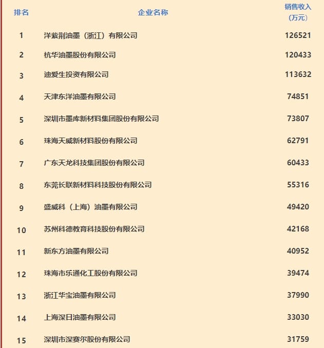 2024年度中國油墨行業(yè)企業(yè)經營狀況榜單揭曉