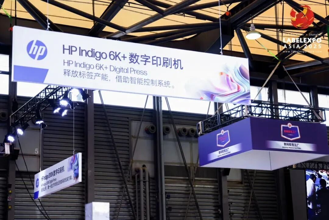 現場以HP Indigo 200K中幅數碼印刷機為核心印刷單元,并與通澤DigiLam系列緊湊型無溶劑復合機、鼎茂KMM-600TSZ制袋機智能協同,完整呈現從印前處理、印刷、復合到制袋成型的全流程數字化生產鏈。