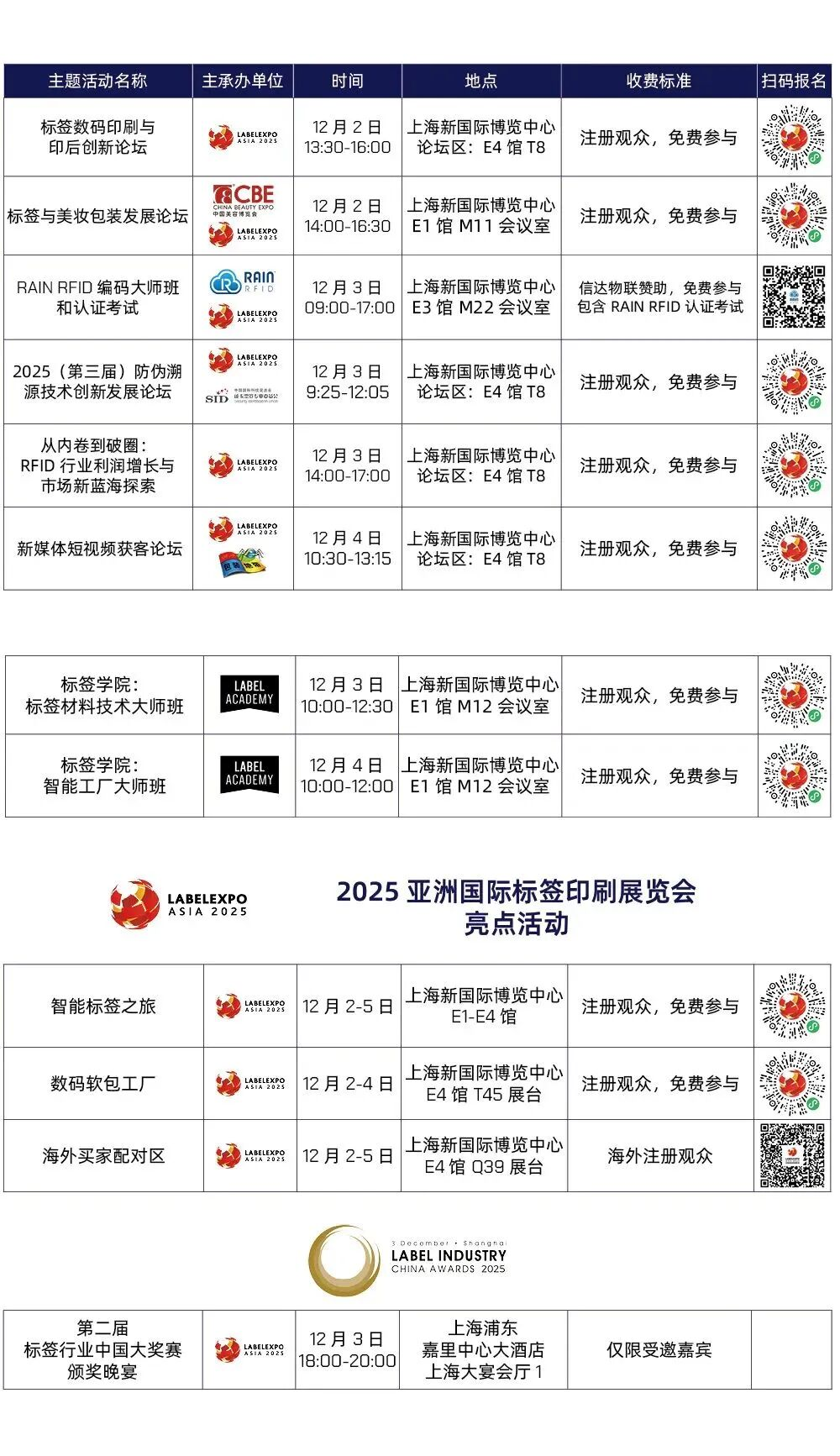 展會同期將舉辦多場主題論壇和2場標簽學院大師班,涵蓋數碼印刷及數字印后加工技術、防偽溯源、RFID技術、標簽加工材料、智能工廠、新媒體運營等熱點議題,助力從業者洞察趨勢、共享智慧。