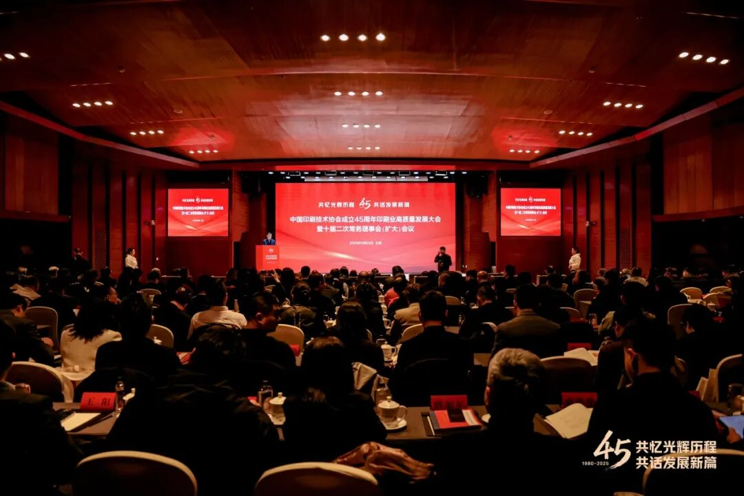 冬至陽生,歲啟新章,暖意相聚,共話初心。2025年12月23日,中國印刷技術(shù)協(xié)會成立45周年印刷業(yè)高質(zhì)量發(fā)展大會暨十屆二次常務理事會(擴大)會議在北京召開。會議以“共憶光輝歷程 共話發(fā)展新篇”為主題,全面總結(jié)協(xié)會45年來發(fā)展成就,深入學習貫徹黨的二十屆四中全會精神,凝聚行業(yè)力量共商高質(zhì)量發(fā)展路徑。來自中宣部機關黨委、干部局、印刷發(fā)行局等局室,中國科協(xié)系統(tǒng)、兄弟協(xié)會、地方印協(xié)等單位的領導和嘉賓,以及來自全國印刷、出版及相關領域的代表200余名代表齊聚一堂,共赴行業(yè)盛會。