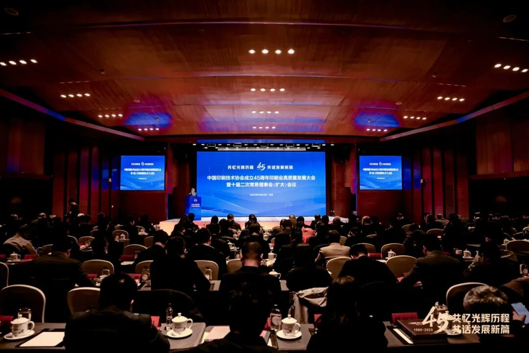 2025年12月23日,在共同慶祝中國印刷技術協會成立45周年和共同回顧行業高質量發展奮斗歷程的濃厚氛圍中,以“學習貫徹黨的二十屆四中全會精神,推動印刷業高質量發展” 為主題的中國印刷技術協會十屆二次常務理事會(擴大)會議接續舉行。中國印刷技術協會理事長劉曉凱出席并作報告,中宣部印刷發行局二級巡視員路洲、中宣部印刷發行局印刷復制處處長徐雪、中國印刷技術協會常務副理事長陳迎新出席會議。會議由中國印刷技術協會秘書長文靜主持。