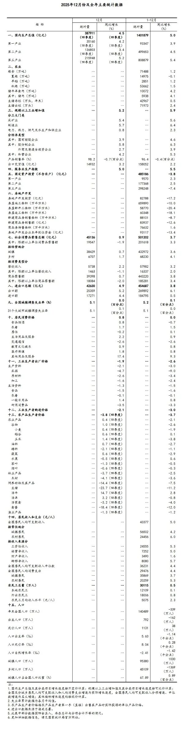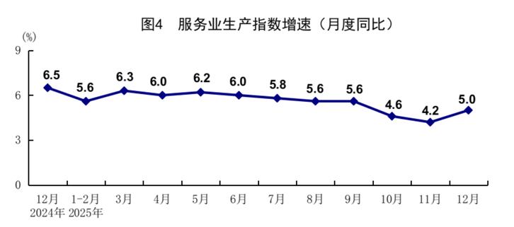 工業增加值:2025年全年,規模以上工業增加值同比增長5.9%,12月,同比實際增長5.2%。