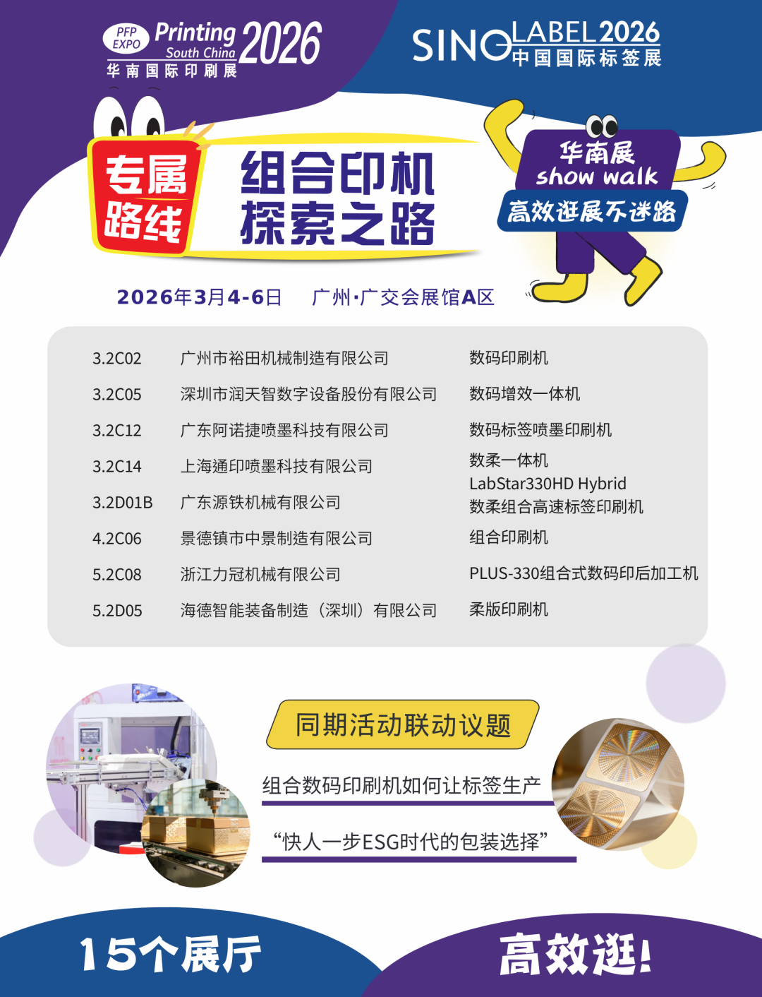2026年,展會創新推出“華南展Show Walk”主題參觀路線,為您系統化梳理標簽生產關鍵環節與未來趨勢,打造高效、沉浸式的探索體驗之旅。