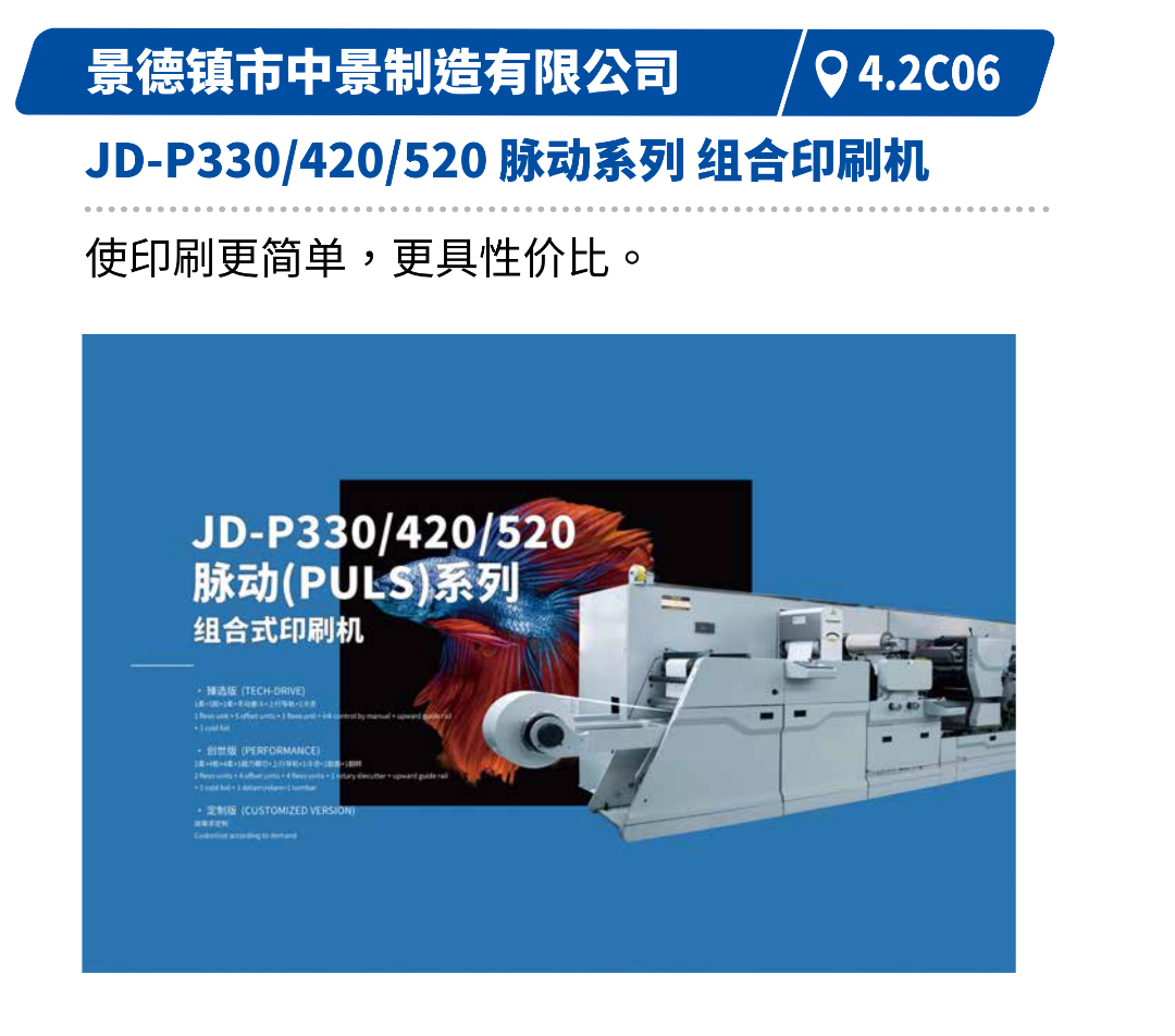 展示膠印、柔印、數碼等多工藝一體化創新方案,通過模塊化設計實現一機完成復雜工序。如上海通印的數柔一體機、中景的組合印刷機、力冠的組合式數碼印后加工機等,將展示其在應對多樣訂單、縮短生產周期、降低流轉成本方面的顯著優勢。