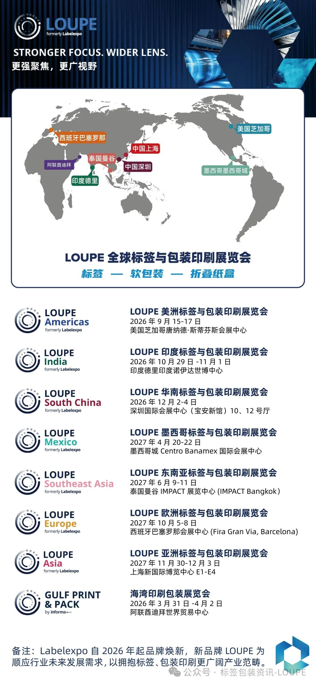 LOUPE華南展植根于享譽(yù)業(yè)界的Labelexpo品牌基因,并在此基礎(chǔ)上深度進(jìn)化。新名稱“LOUPE”(英文翻譯:放大鏡)寓意聚焦行業(yè)精粹、洞察創(chuàng)新細(xì)節(jié)、放大合作價值。展會將立足粵港澳大灣區(qū)這一世界級印刷產(chǎn)業(yè)與科技創(chuàng)新高地,深度輻射華南全境,覆蓋廣東、香港、澳門、臺灣、福建、湖南、江西、四川、重慶、廣西、云南、貴州、海南等廣闊市場,并憑借地利之便與品牌積淀,影響力將持續(xù)向東南亞乃至更廣泛的國際市場延伸,構(gòu)建一個貫通國內(nèi)國際雙循環(huán)的行業(yè)商貿(mào)與交流樞紐。