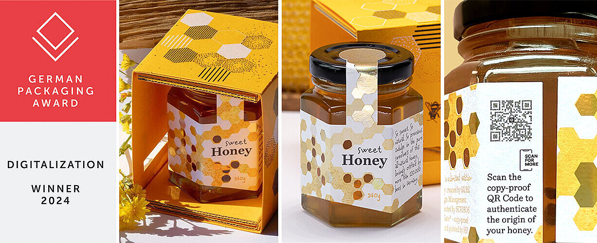 在2024年和2025年接連斬獲德國(guó)包裝獎(jiǎng)和世界包裝大獎(jiǎng)(World Star Awards)的由庫(kù)爾茲LEONHARD KURZ及其子公司科衛(wèi)寶SCRIBOS聯(lián)合打造的蜂蜜包裝“甜蜜蜜”更是智能包裝的典型案例。