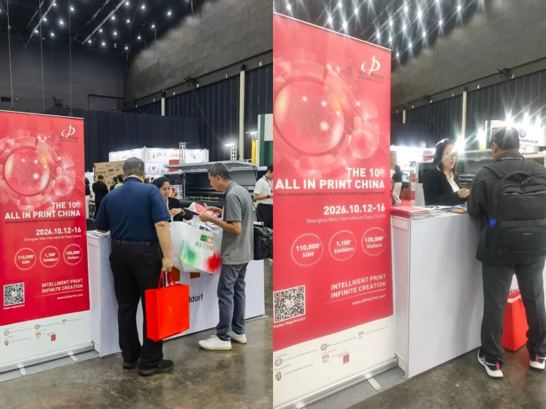 2025年9月17日至20日,在Pack Print International 2025盛大舉辦期間,2026中國國際全印展在泰國推介活動成功舉行。此次活動通過多維度宣傳與高規格亮相,向東南亞及全球印刷行業傳遞了2026全印展的核心亮點與前沿動態,現場反響熱烈。