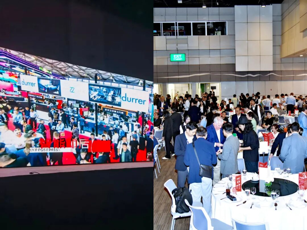 在9月19日舉辦的亞洲印刷大獎頒獎晚宴上,全印展以極具視覺沖擊力的“中國紅”宣傳冊裝點晚宴餐桌,主屏幕上播放的上屆回顧視頻,直觀生動呈現了全印展的盛大場景、豐富活動與人潮涌動的熱鬧景象。