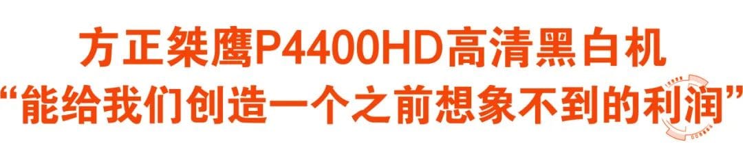至于選擇這臺黑白高清機型的原因,時佰峰有自己的考慮,“之前我們大部分黑白訂單,比如年鑒,都是用600dpi的數碼設備印刷,客戶覺得效果不如傳統印刷好。”方正桀鷹P4400HD高清黑白機裝機1個月,處理的所有訂單,客戶大部分都評價“比傳統印刷出來效果都要漂亮”。新設備良好的印刷效果讓時佰峰再次吃下了定心丸。