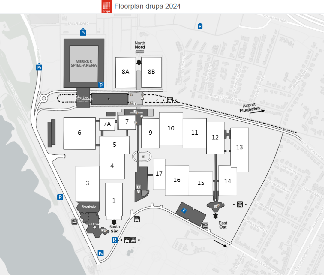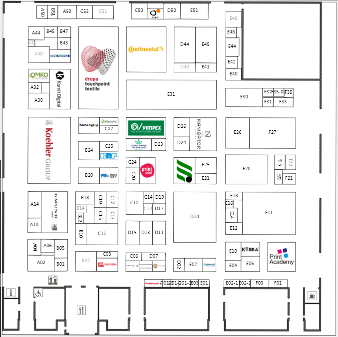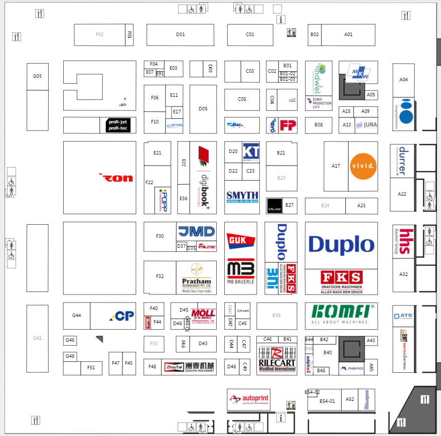 在約140000平方米的凈面積和18個展廳里,所有參展商都將展示各自印刷技術領域的發展趨勢和創新想法。其中,包裝生產和印刷包裝是兩個同樣重要的領域。眾多全球知名展商悉數在列,例如:Bobst,Canon,Comexi,Duplo,EFI,Epson,ESKO,Fujifilm,Heidelberg,Horizon,HP,Kodak,Koenig&Bauer,Kolbus,Komori,Konica Minolta,KURZ,Landa,Müller Martini,Ricoh,Screen,Windm?ller&H?lscher,Xeikon。觀眾可以在www.drupa.de上在線查看參展商的完整名單。