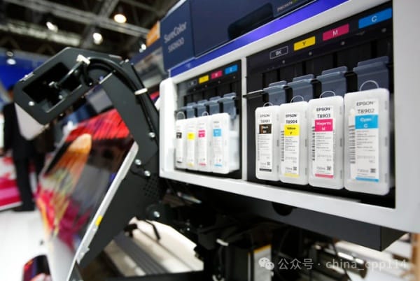 展會現場,潤天智負責人向筆者介紹,本次展出的所有數字印刷設備采用的噴頭都是愛普生工業打印頭,不僅高質高效,而且符合當前環保發展趨勢。