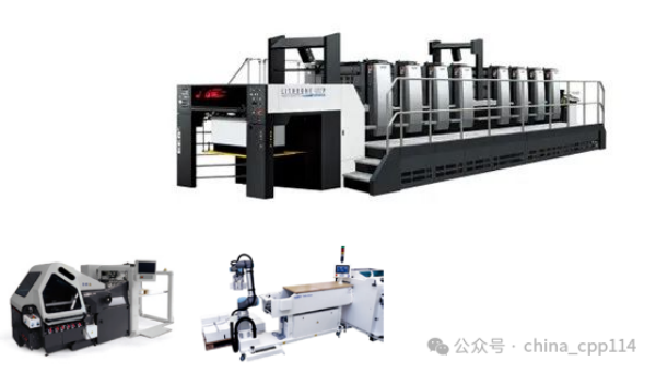 第二家日本印刷機制造商利優比新菱在16號展廳展示了2臺膠印機、1臺 B1紙盒印刷機和1臺SRA1長的雙面印刷機。其中,1060LX紙盒印刷機配置為6色印刷,以及雙涂布機,運行速度為17,100張/小時(包括最重的機器) ,承印材料可達1mm。這是一款LED固化印刷機,采用GEW的LeoLED層間單元和印刷機末端,同時換版。新開發的RMGT 970PF-8單雙面兩用對開印刷機,特點是能實現智能化管理,可以做到無人工廠不停機,在整個膠印機領域都比較超前;另一款是專為包裝市場研發的RMGT 1060AX-6薄厚紙兼用大對開印刷機,在自動化方面領先一步;展會現場還展示了EB(電子束)烘干的新技術,占地面積小,烘干效果好。