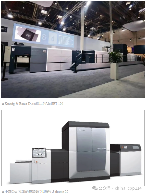 作為一項傳統印刷技術,我們看到,膠印在設備設計上更加追求效率的極致提升,借助自動化和智能化裝置以及數字化軟件,縮短換單時間,提升設備綜合效率,同時膠印設備廠商也在持續創新,延長自己的產品線。海德堡和佳能合作,推出了基于B3幅面的Jetfire 50和基于B2幅面的新型Jetfire 75單張紙噴墨解決方案;科尼希鮑爾首次公開展示的由合資企業Koenig & Bauer Durst推出的VariJET 106印刷機,其生產的印刷樣品展示了其應用的廣泛性,諸如藥品、保健品和化妝品以及食品和飲料包裝等;小森公司單面印刷速度為每小時6,000張,可以提供全球頂級ROI(投資回報率)的B2幅面單張紙UV噴墨數字印刷機J-throne 29,在drupa 2024展會上實現全球首秀,數字印刷設備性能愈發成熟。