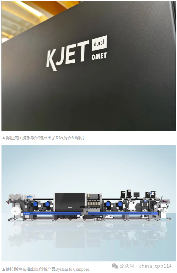 其他領域的印刷設備制造商也紛紛推出新的數字與噴墨方面的設備。標簽領域的得世集團攜手歐米特推出了KJet混合印刷機,以用戶為中心的設計和極短的紙卷路徑,為操作人員提供了一個高效且無縫的工作環境,同時減少了材料浪費和準備時間,充分展現了數字印刷的潛力;捷拉斯宣布推出其創新產品System to Compose,印刷寬度從原來的340毫米增加到430毫米,通過提升技術兼容性,允許添加、移除或更換附加單元,激勵印刷商創造獨一無二的印刷作品。印后包裝領域的長榮集團帶來的Mastermatrix 106 CSB全清廢模切機代表了其高速模切技術方面的創新成就,其在9000S/H小時速度下實現精準、穩定的全清廢生產,全新快速換版系統,對于多樣化訂單更為高效;博斯特集團宣布推出DIGITAL MASTER 55,集成了印刷、裝飾、質量控制和模切等多個工序,其生產速度可達每分鐘100米,不僅保證了更快的交付速度,還實現了更優的總擁有成本(TCO);高寶全球首發的速度高達16000張/小時的輪轉模切機CutPRO X 106,為市場提供了更多選擇……