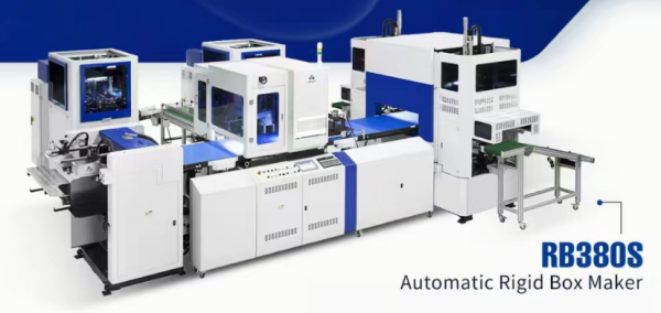 例如RB380S全自動紙盒成型機采用PLC可編程序控制器、影像定位系統(tǒng)、伺服控制系統(tǒng)、觸摸屏人機界面,實現(xiàn)自動送面紙、面紙上膠、紙板自動輸送、紙板成型貼四角、定位貼合、紙盒成型等動作一次性完成,有效代替人工生產(chǎn),大大提高生產(chǎn)效率和紙盒成品質(zhì)量。適用于制作手機盒、鞋盒、化妝品盒、襯衫盒、月餅盒、酒盒、香煙盒、茶葉盒等紙盒包裝。