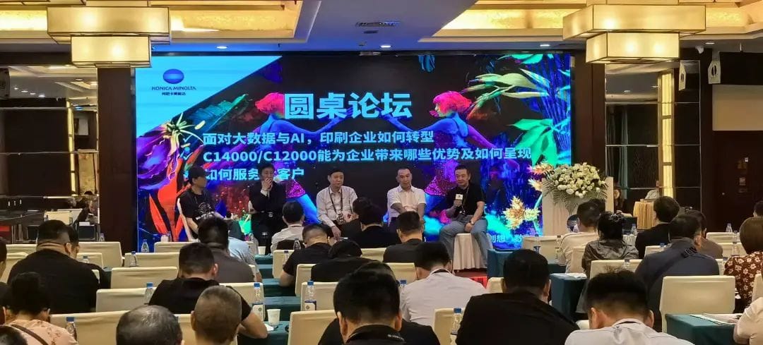 隨后,圍繞“面對大數據與AI技術、企業如何成功轉型、如何服務好大客戶以及AccurioPress C14000/C12000能為企業帶來哪些優勢及如何呈現”等話題,在祁欣的主持下,上海數字印刷行業協會會長薛平與柯尼卡美能達、蘇州愛歐圖文、中彩印刷等企業嘉賓進行了深入探討,為在座嘉賓帶來了一場精彩的行業對話。