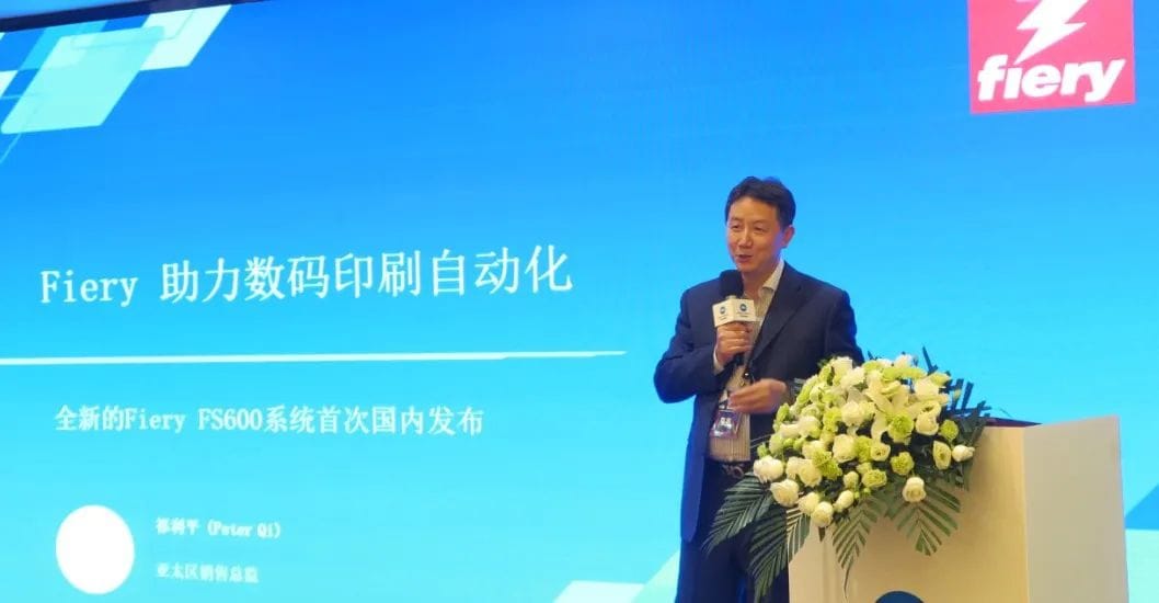 下半場精彩繼續。來自Fiery公司的總經理祁利平先生圍繞“為什么要做自動化和智能化”,發表主題演講——《助力數碼印刷自動化》,并首次在國內發布全新的Fiery FS600系統。據介紹,Fiery2023年從efi獨立,成為一家獨立的公司,目前是efi的兄弟公司,由同一股東Siris Capital集團所有。
