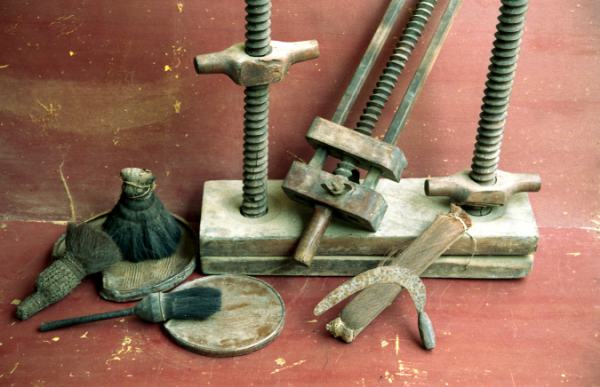 連城四堡雕版印刷技藝具有家族傳承性、制作精巧性、手工操作性等特征。相關器具主要有刻刀、曲鑿、平鑿、斜鑿、鐵錘、刨子、鋸子、棕刷、小墨缸、紙張等。傳統印刷技藝流程極為復雜,現流傳的制作技藝大致可以分為胚版勾描、雕刻打磨、刷油上墨、平掃壓印、揭紙成型等步驟,凝聚著制墨術、雕刻術、摹拓術等幾種優秀傳統工藝,是我國雕版印刷技藝的杰出代表。